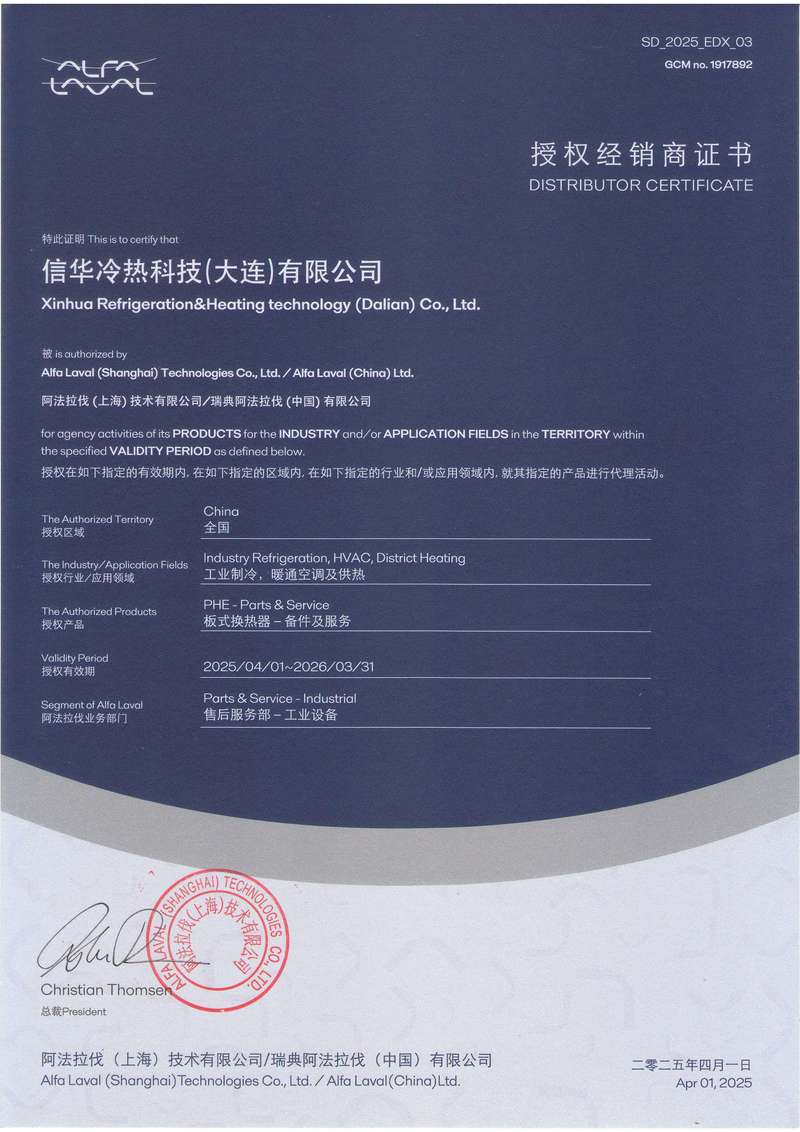 信華冷熱科技(大連)有限公司于2021年9月在大連高新技術園區(qū)注冊成立。公司專業(yè)從事工業(yè)冷熱系統(tǒng)的技術解決方案,致力于為客戶提供專業(yè)的工業(yè)冷熱系統(tǒng)的技術咨詢和服務,提供節(jié)能、高效、高安全性的工業(yè)冷凍設備,提供智能化的工業(yè)冷熱系統(tǒng)的技術升級及遠程管理方案,包括工業(yè)冷熱系統(tǒng)的方案設計、相關設備的選型采購、施工安裝調(diào)試、以及運營維護服務等,涉及的領域為冷凍冷藏、物流倉儲、暖通、熱力等,主要行業(yè)包括乳品、啤酒、食品加工、樓宇中央空調(diào)、熱力站等。